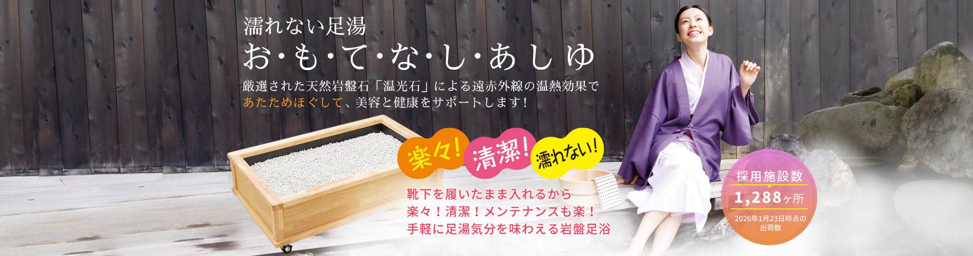 ※濡れない足湯「お・も・て・な・し・あしゆ」は、1,288ヶ所(2026年1月23日時点)の施設様・個人様にご利用いただいています。